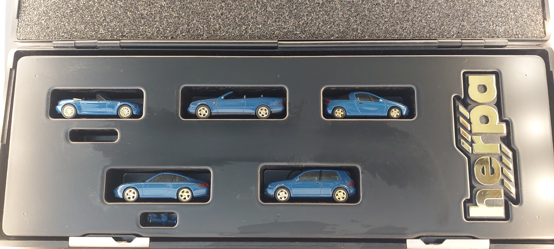 Herpa 189286 H0 1:87 Millennium Set 5 Blauwe Auto's BMW, Merc, VW, Opel, Porsche