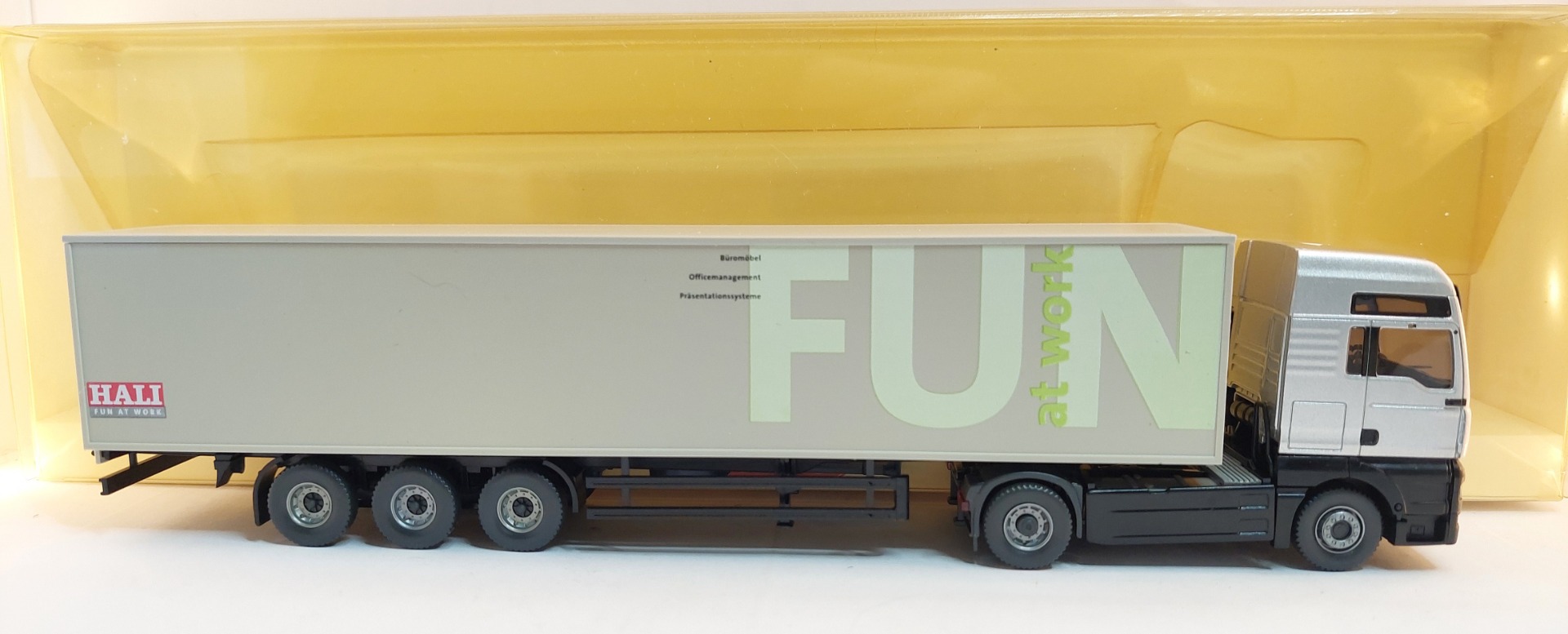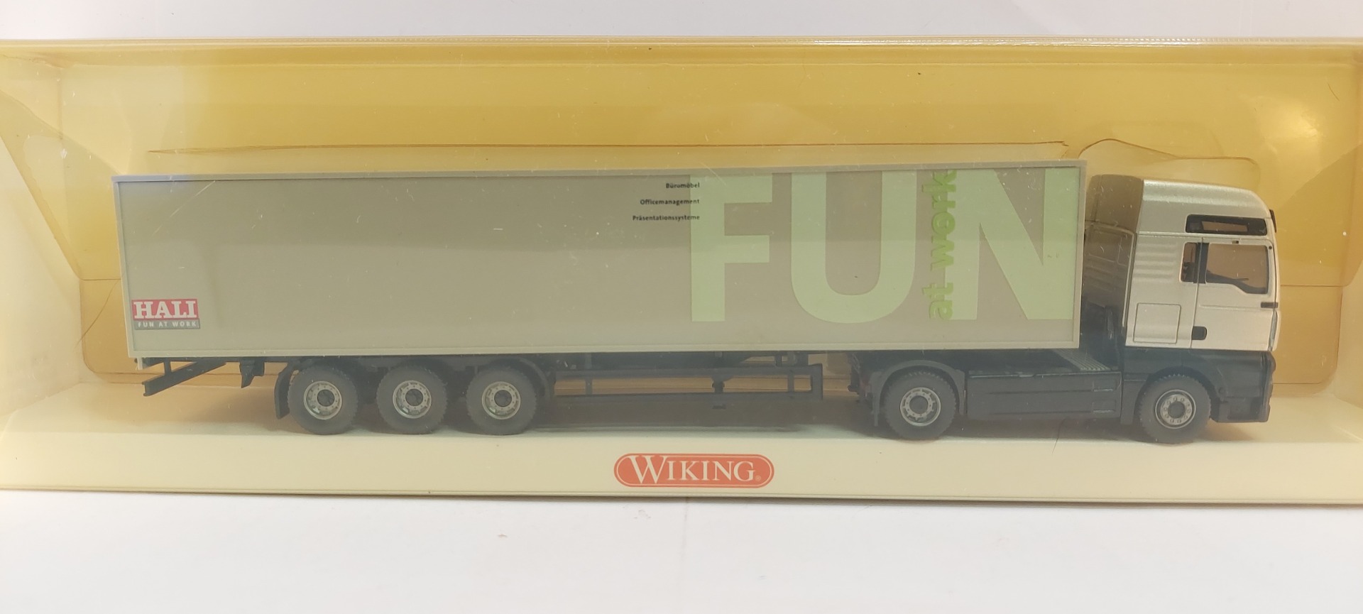 Wiking 5381043 H0 1:87 Vrachtwagen met oplegger 'Fun at Work' Steyr ST-A